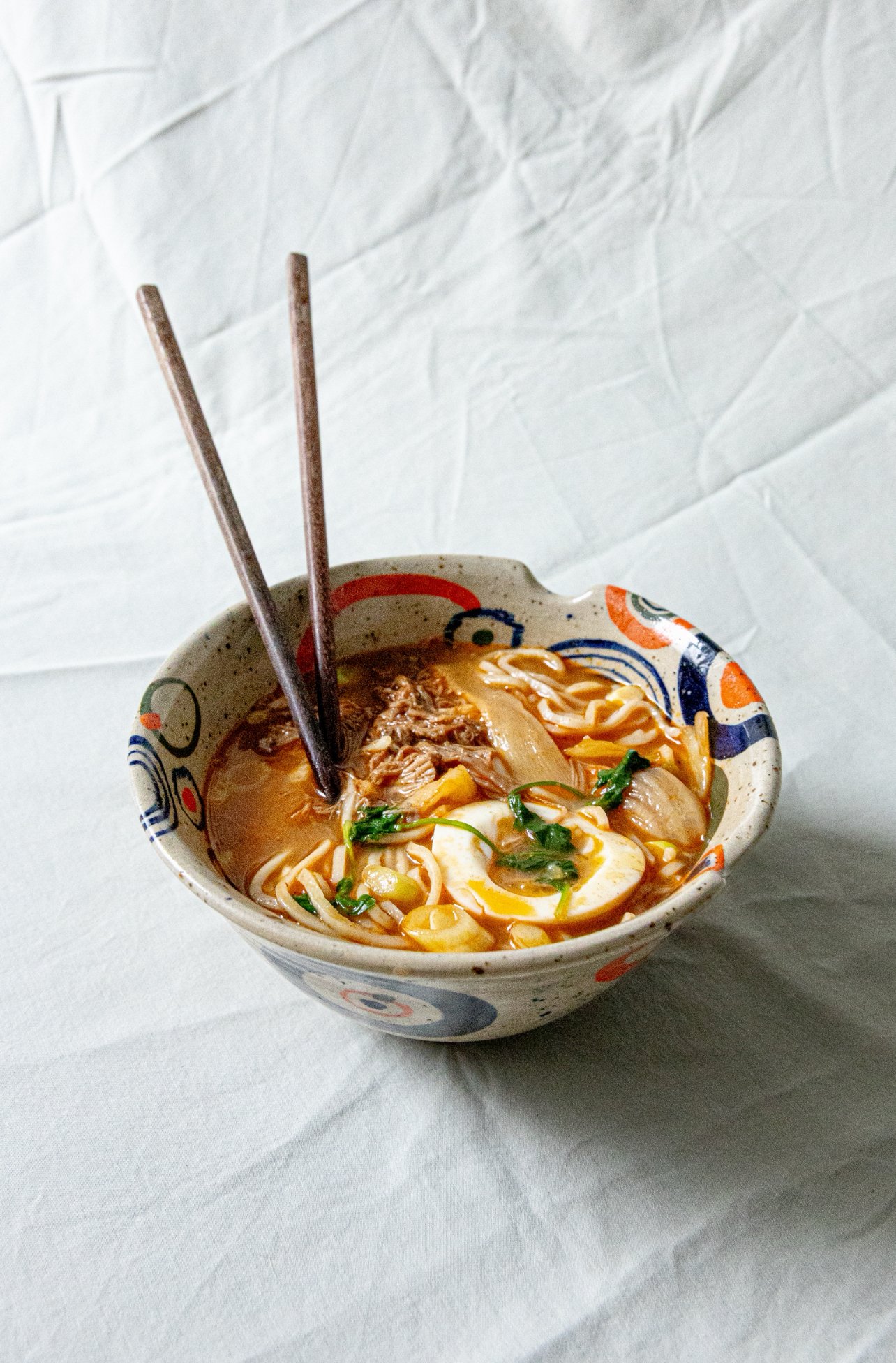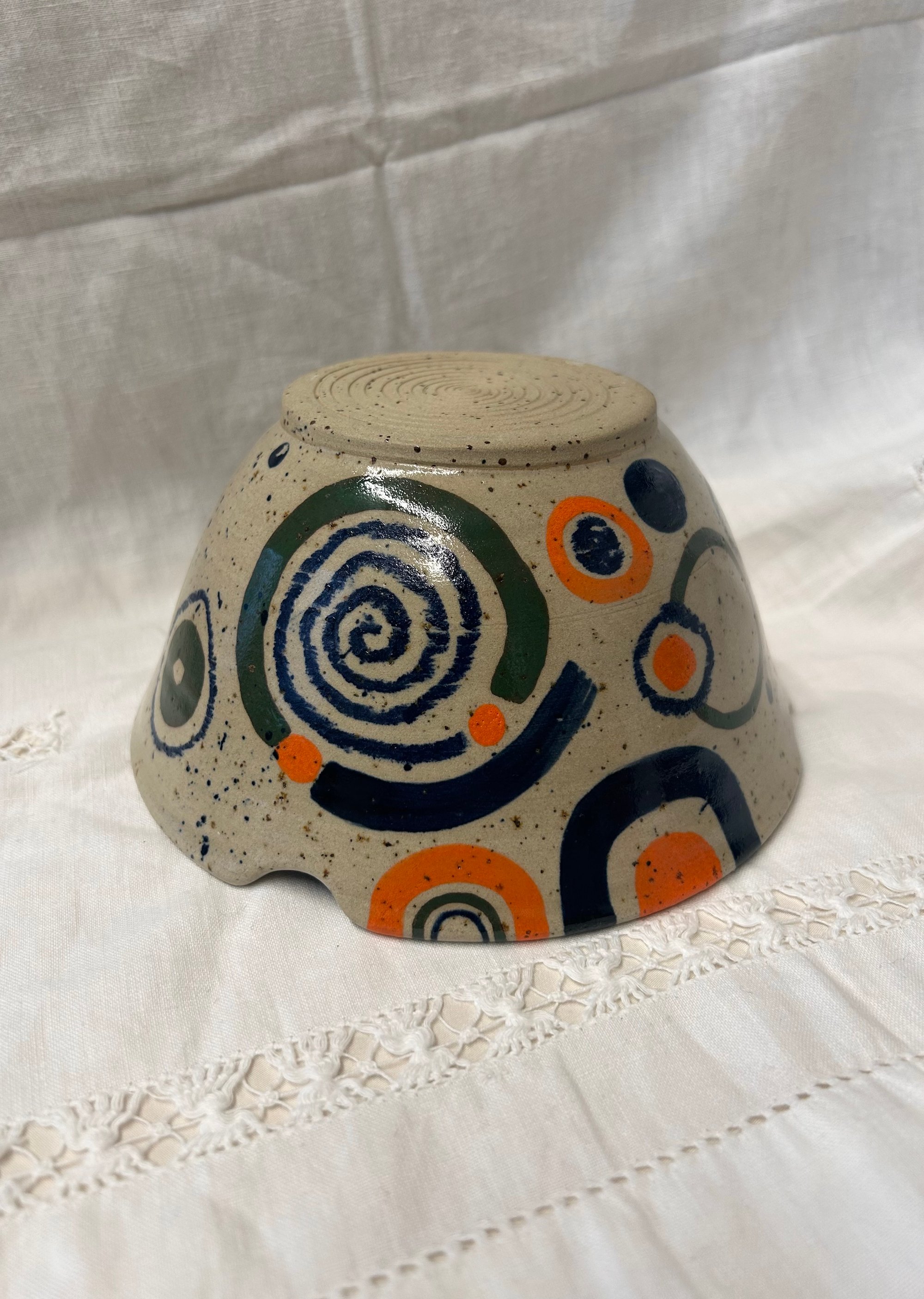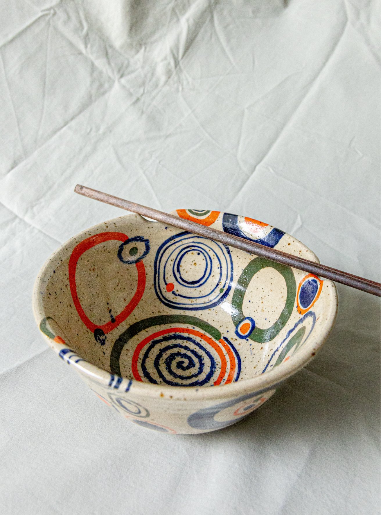 wheel thrown speckled stoneware bowl with chopstick grooves