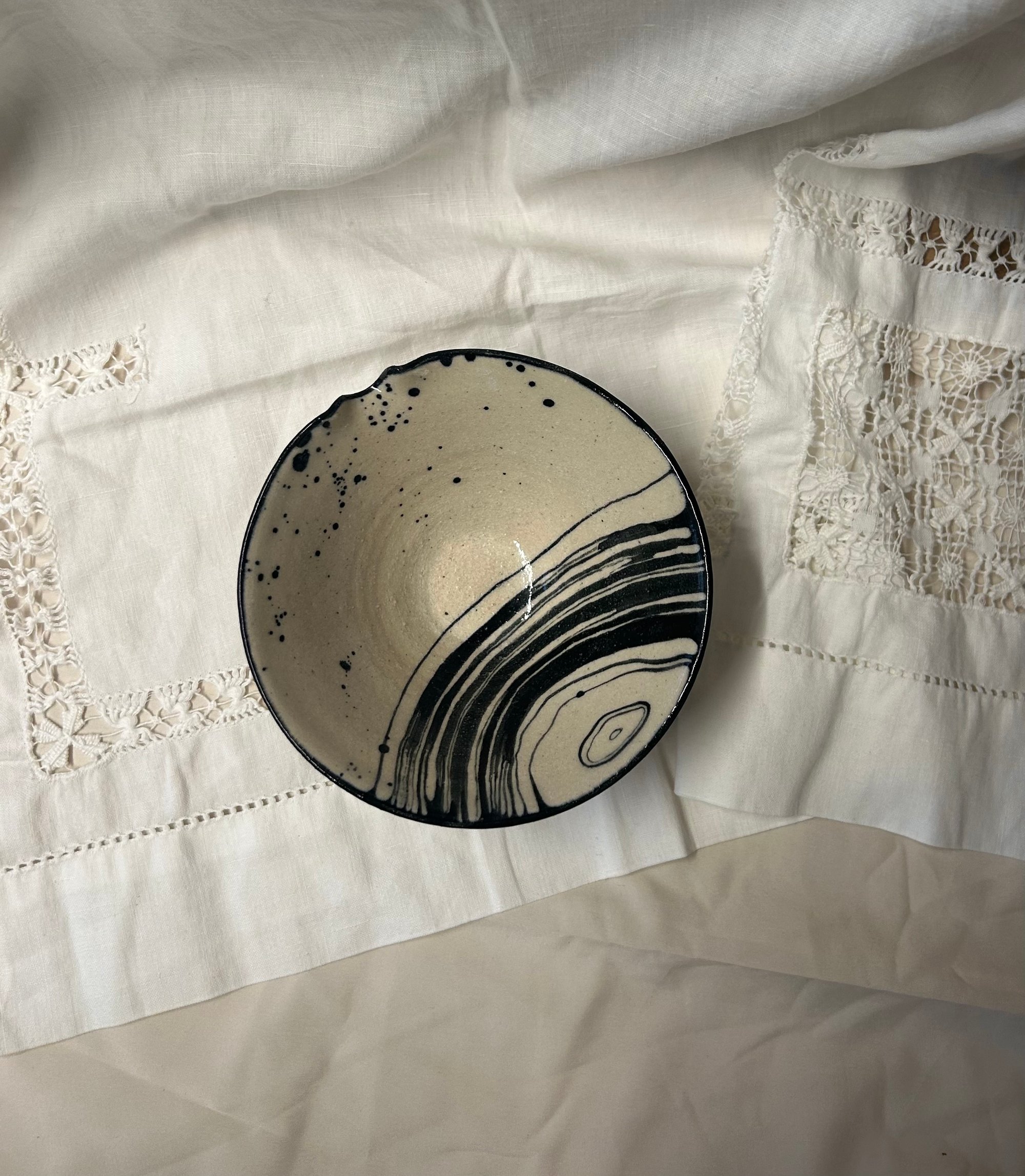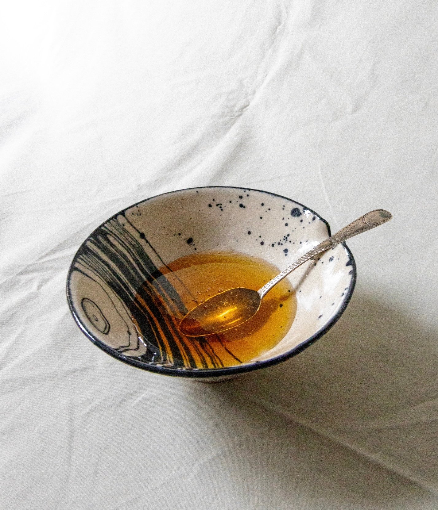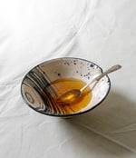 wheel thrown stoneware condiment bowl with built in spoon rest